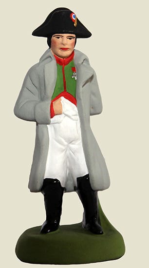 « Je suis catholique parce que mon père l’était et que c’est la religion de la France » (Napoléon à lord Ebrington, le 8 décembre 1814, sur l’île d’Elbe). Cela mérite bien d’avoir son santon commercialisé par l’honorable maison TRUFFIER-DOUZON, à Gréoux-les-Bains (Alpes-de-Haute-Provence) et chez quelques autres santonniers.
