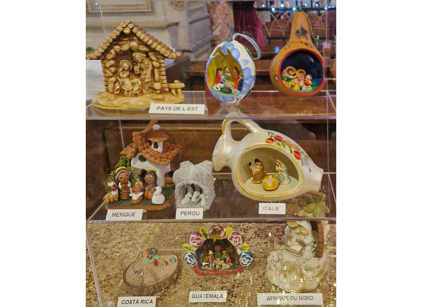 Conçue ailleurs, non par les Français mais par les Franciscains en Ombrie, au 13ème siècle, sous forme vivante et pour les humbles, reprise sous forme pédagogique (et inanimée) par la contre-Réforme sur ses marges d’Europe orientale, introduite dans les familles françaises comme un acte de résistance durant la déchristianisation révolutionnaire, popularisée ensuite sous une forme folklorique provençale (mais mâtinée du goût un peu mièvre que l’on développait dans les boutiques de bondieuseries du quartier Saint-Sulpice à Paris) et finalement répandue à travers le monde dans les cultures les plus diverses, la crèche est le tabernacle d’un petit culte familial ; elle n’a rien de national (ou alors de façon conflictuelle) et n’est pas censée parler de la France aux Français plus que du Canada aux Canadiens ou de l’Équateur aux Équatoriens, quand bien même – bien sûr – ce sont toujours des éléments locaux (décor, métiers, costumes, cheptels) qui lui donnent son charme particulier.